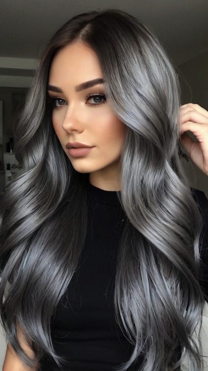 Transform your look with Black And White Ombré Hair, a striking option for hair dye ideas dark colors. This style blends the contrast of deep black roots with white or silver ends, creating a dramatic and eye-catching effect. The black and white ombré adds a modern twist to classic dark hair, making a bold statement. This look is perfect for those who want to stand out and embrace a unique style. Maintain the ombré with regular touch-ups to keep the colors vibrant and distinct, ensuring your hair always looks its best.