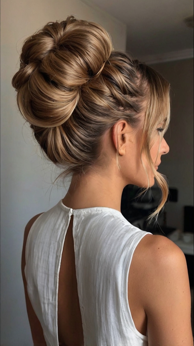 The messy high bun is among the most loved Easy Hair Updos For Beginners. It’s particularly great for those with Above Shoulder Hair or Shoulder Length Bridesmaid Hair looking for a casual yet stylish touch. Start by gathering your hair into a high ponytail, twisting it loosely, and pinning it into place. This style beautifully frames Hair Bangs Straight, adding effortless charm. If you’re seeking Easy Hairstyles For Work, the messy high bun provides a balance of comfort and professionalism. Perfect for warm weather, it’s an ideal pick for Summer Updos. Add a modern spin by incorporating tips from hairstylist Jayne Matthews, who champions playful yet polished looks. Whether you’re heading to the office or an event, this hairstyle is simple, quick, and trendy.