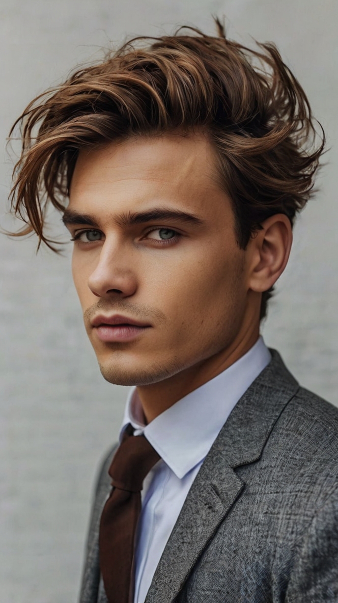 The Messy Spikes offer a playful and edgy look for a February Hairstyle For Men. This style features spiked hair with a messy texture, adding a touch of rebelliousness. It’s perfect for winter, providing a bold and adventurous look. Pair this hairstyle with a soft beard to balance the edginess. This amazing hairstyle is ideal for those who want to make a statement and stand out during winter events. Complete the look with elegant silver round jewelry for a unique touch.