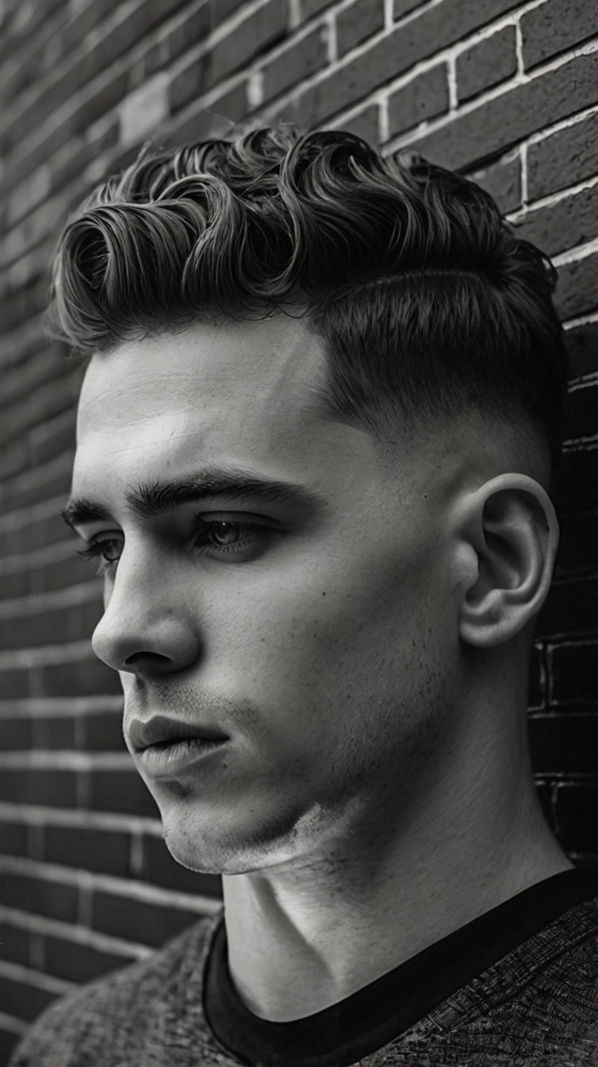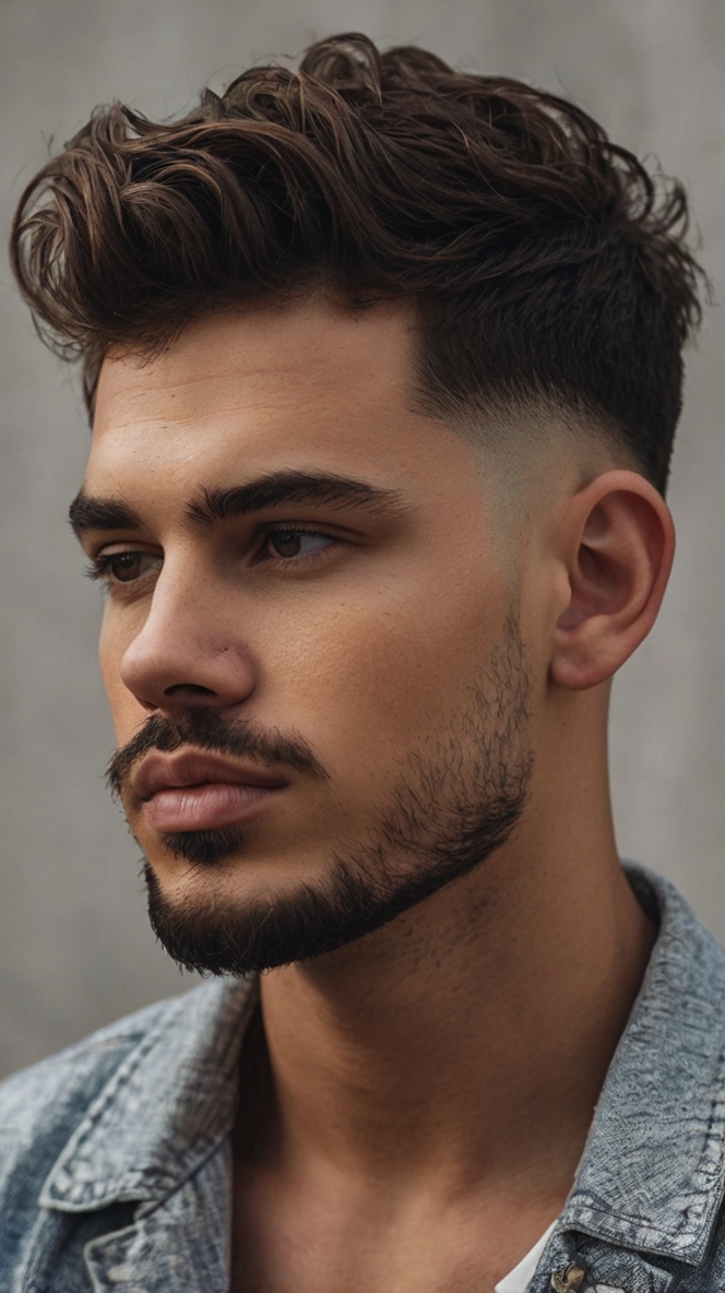 Achieve a stylish and sophisticated look with the Low Skin Fade Haircut Men and comb over. This style features a low fade that transitions into a neatly combed over top, offering a clean and polished appearance. It’s ideal for men who want a professional and stylish haircut that is easy to maintain and style.