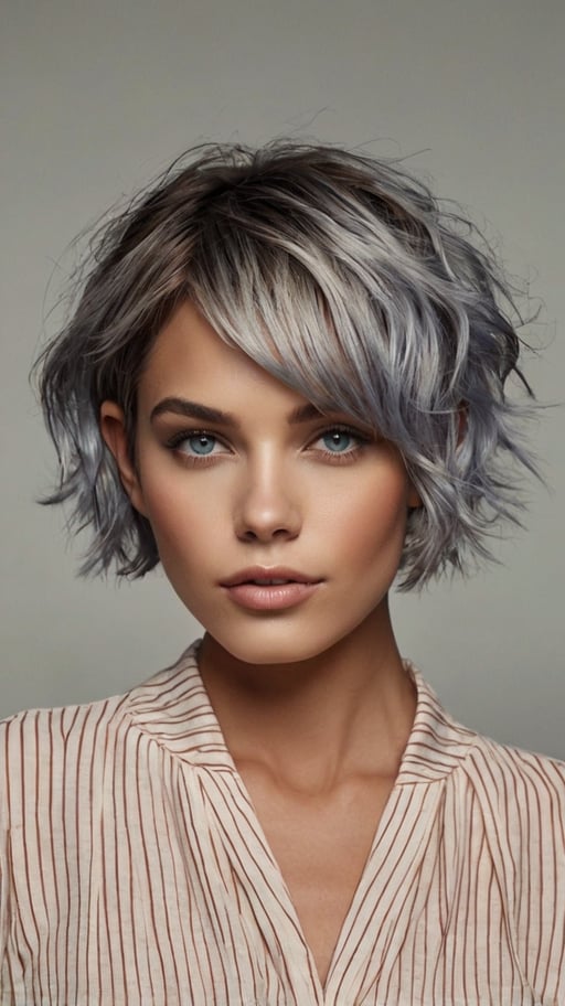 The Dye Short Hair bold red bob is a striking choice for anyone looking to turn heads. This vibrant hair color is perfect for those who love to stand out. The bob cut adds volume and movement to your hair, making it look full and healthy. This style works well with haircuts for medium length hair who want to go shorter. Complement this hairstyle with a traditional Jamawar Sherwani with traditional drape for a unique and elegant appearance. This look is also great for those seeking bold hair color.