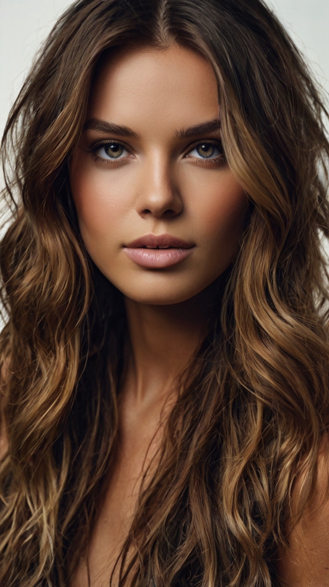 Achieve a polished appearance with a glossy high bun that showcases your easy silky hair. Start by applying an anti-frizz serum to smooth your strands and make your hair silky. Gather your locks into a high ponytail, twist them around the base, and secure them with pins. This simple way to style your long brown hair works for any occasion. Add a few loose strands or incorporate two braids for a personalized touch.
