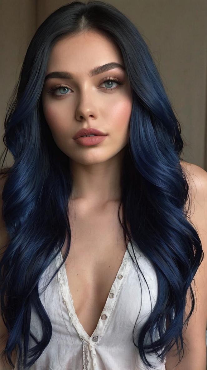 Enhance the allure of Midnight Blue Hair by incorporating Plum Black Hair accents. This subtle touch of purple creates a multi-dimensional effect that’s both unique and captivating. To amplify the texture, apply a Volumizing Mousse, ensuring the colors blend seamlessly. Style your hair with a Round Brush for added smoothness and shine. Pair this look with Full Length Black Tights For Gym for a casual aesthetic or a Gold Pearl Necklace With Polished Round Beads for elegance. Perfect for those who love experimenting with Hair Color Dark, this style is a true Hair Inspiration Color that turns heads effortlessly.