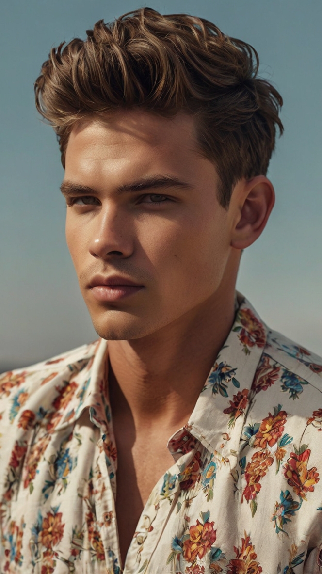 The voluminous long top short sides men hairstyle is perfect for those who want to add extra volume and height to their look. This mens haircuts long style features a voluminous top with short, tapered sides, creating a bold and striking appearance. It’s ideal for those who want a fashionable and eye-catching hairstyle. The voluminous top allows you to choose the right products to maintain the height and texture. Enhance this look with cotton flare jeans with five pockets and cropped leg for a trendy and modern outfit.