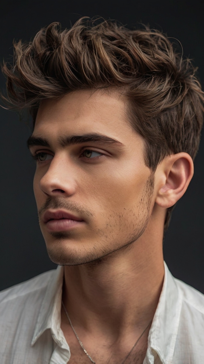 The high volume long top short sides men hairstyle is perfect for those who want to add extra height and volume to their look. This mens haircuts long style features a voluminous top with short, tapered sides, creating a bold and striking appearance. It’s ideal for those who want a fashionable and eye-catching hairstyle. The high volume look allows you to choose the right products to maintain the height and texture. Pair this look with khaki straight pants for business casual for a stylish and professional outfit.
