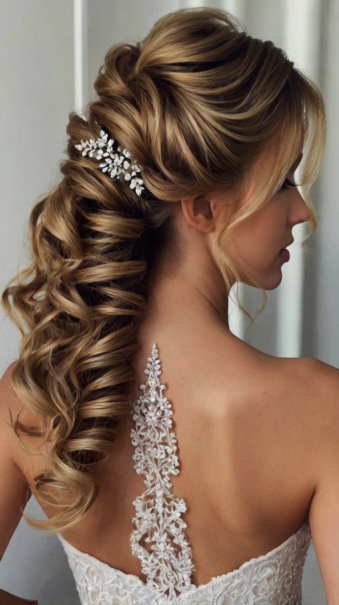 Transform your hairstyle with Wedding Hair Down With Curls enhanced by Curly Hair Extensions. These extensions provide length and volume, perfect for brides aiming for dramatic, cascading curls. Pair with Ruby Hair Accessories or a Queen Crown Vintage for a luxurious finish. Whether you’re inspired by Hair Styels or looking for versatility, this choice adapts beautifully to any bridal theme.